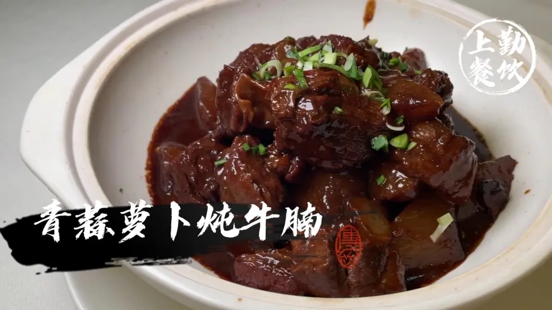 论起“拌饭菜肴排行榜”,青蒜萝卜炖牛腩决不能缺席。汤汁浓郁,色泽红亮,搭配米饭可真是太香了!